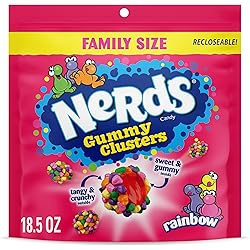 $6.30 (as of October 10, 2025 09:46 GMT -07:00 - More infoProduct prices and availability are accurate as of the date/time indicated and are subject to change. Any price and availability information displayed on [relevant Amazon Site(s), as applicable] at the time of purchase will apply to the purchase of this product.)NERDS Gummy Clusters, Candy, Rainbow, Crunchy and Gummy, 18.5 oz