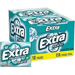 $18.29 (as of December 23, 2025 05:46 GMT -08:00 - More infoProduct prices and availability are accurate as of the date/time indicated and are subject to change. Any price and availability information displayed on [relevant Amazon Site(s), as applicable] at the time of purchase will apply to the purchase of this product.)EXTRA Polar Ice Chewing Gum Packs, Sugar Free Gum in Bulk for Fresh Breath, 15 Sticks