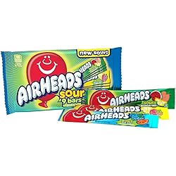 $3.88 (as of December 22, 2025 05:16 GMT -08:00 - More infoProduct prices and availability are accurate as of the date/time indicated and are subject to change. Any price and availability information displayed on [relevant Amazon Site(s), as applicable] at the time of purchase will apply to the purchase of this product.)Airheads SOUR Candy Bars, Sour Watermelon Punch, Blue Blast, Lemon Berry Squeeze, 9 Bar Movie Theater Box